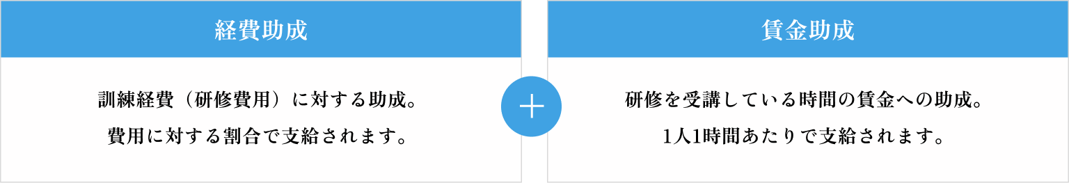 研修費用に対する経費助成と、受講中の賃金に対する賃金助成の両方が支給されます。